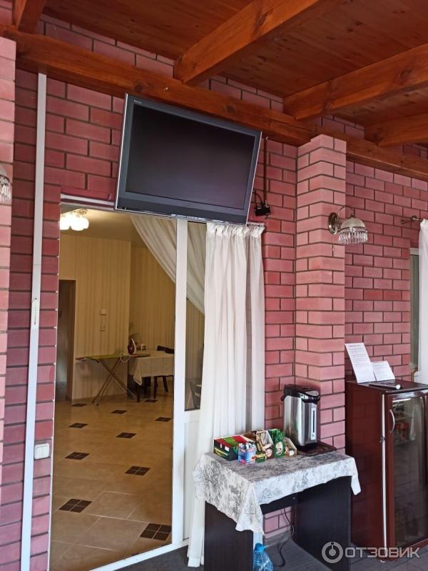 Если не захочется сидеть в столовой, то можно выйти на уютную террасу. Там удобные кресла и столики. Терраса застекленная, поэтому дождь и сквозняки не страшны.