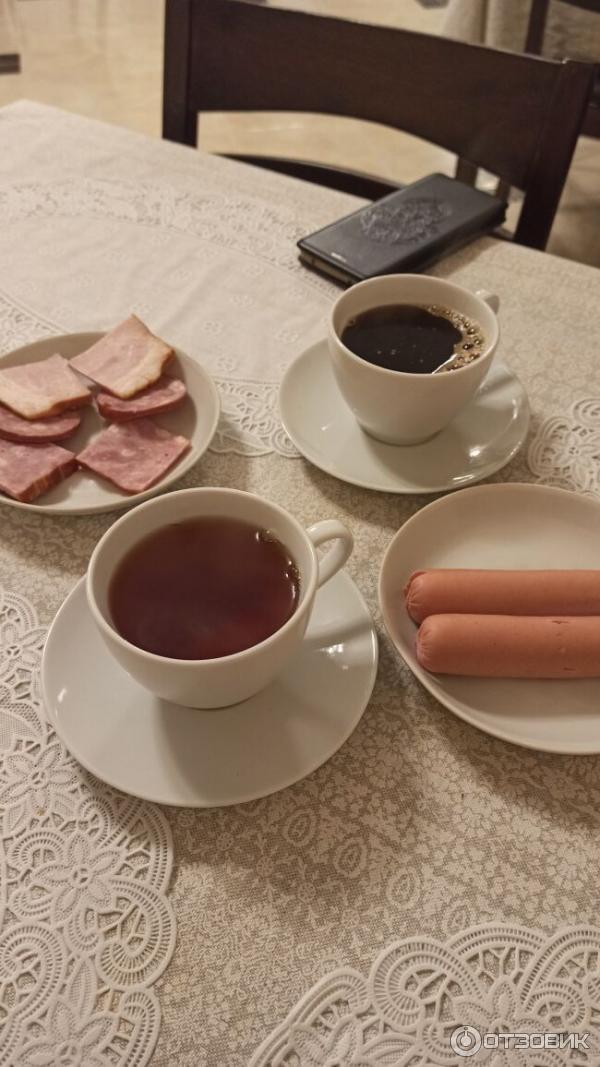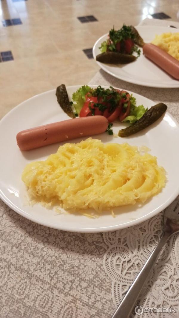 Завтраки в гостевом доме шикарные. Всего лишь за 250 рублей они очень большие, сытные и голодным точно не останетесь.