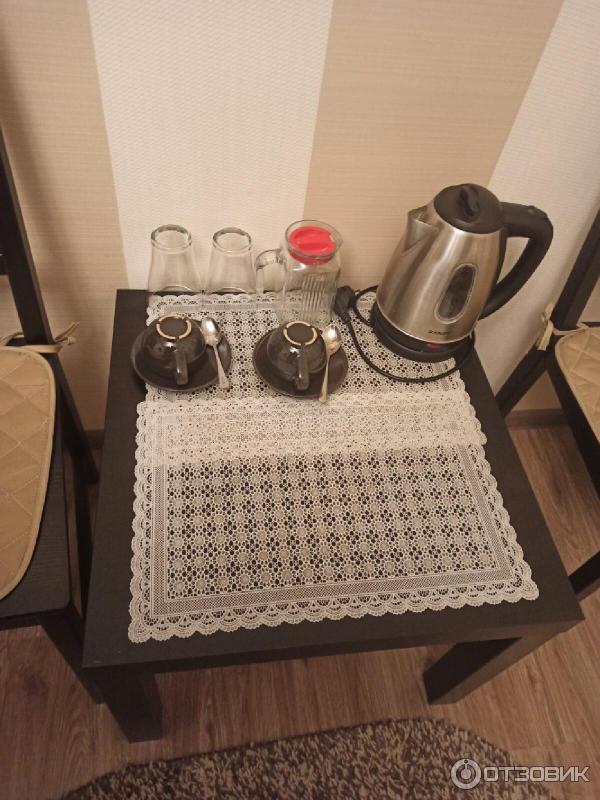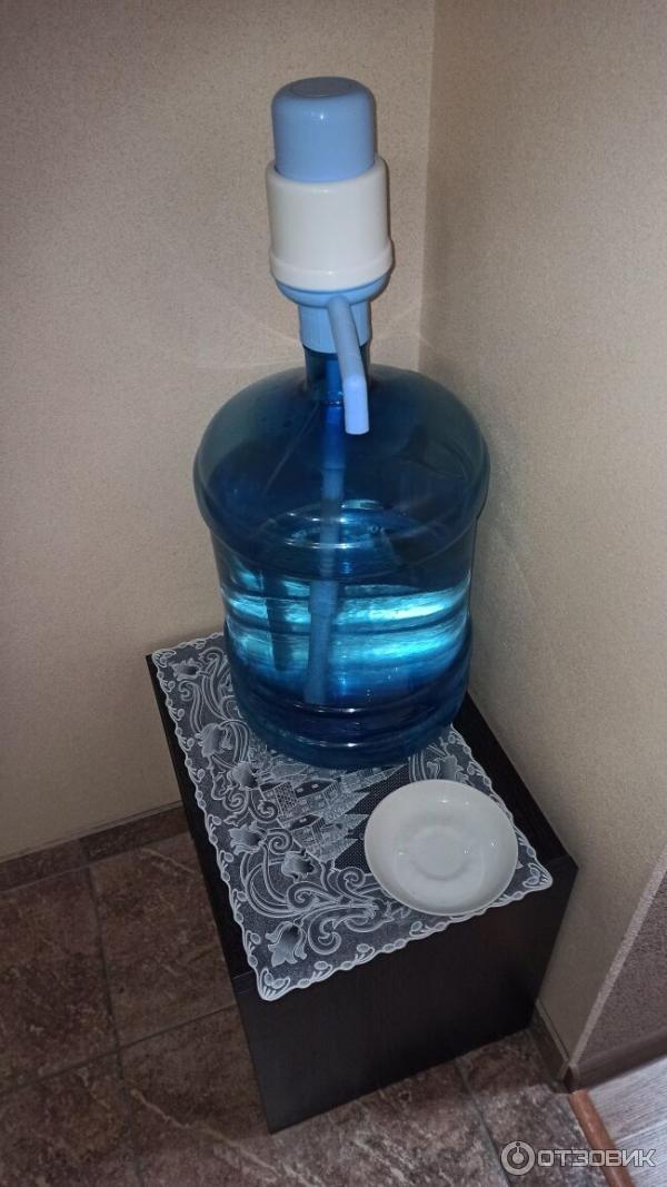 Также есть два стула, столик, чайник, стаканы, чашки с блюдцами и ложками, небольшой кувшин, чтобы наливать в него воду из кулера, мусорное ведро. Кулер у нас находился рядом с номером, он всегда был наполнен водой: