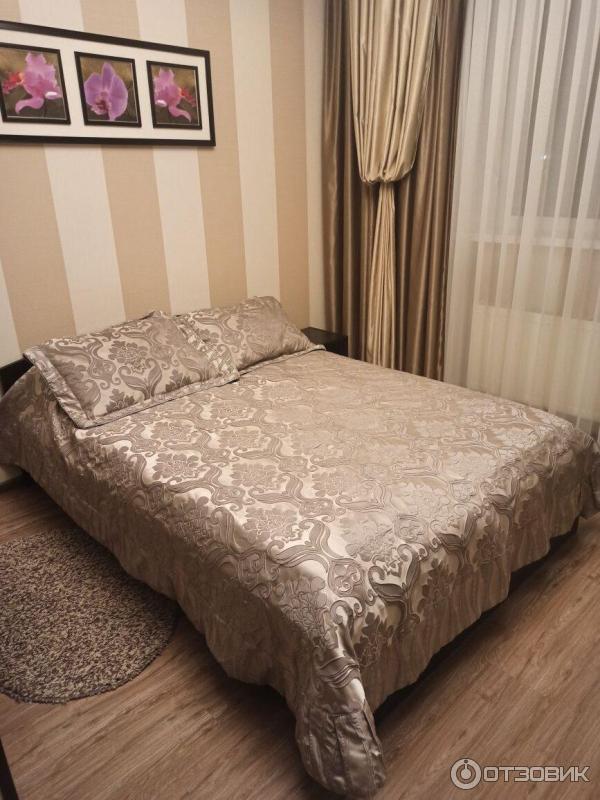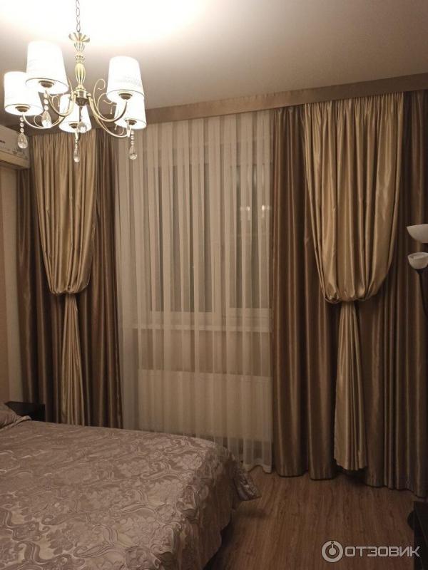 С каждой стороны у кровати лежат коврики, на стенах висят картины. Шторы в номере плотные, если хочется подольше поспать, то как раз они подойдут для этого дела.
