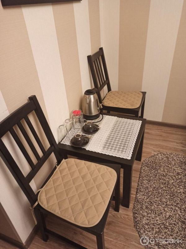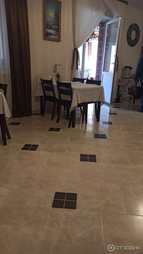 На первом этаже гостевого дома располагается очень просторная столовая. Здесь стоит термопот, множество видов чая, кофе и горячего шоколада в пакетиках, баранки, сахар, кукурузные хлопья и шоколадные шарики(гости с детками оценят такое) и в любое время можно прийти, посидеть, попить горячих напитков.