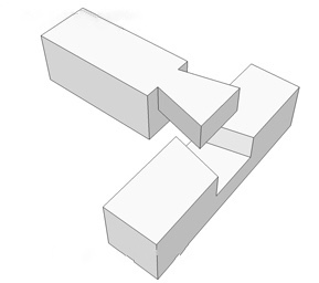 В каждом брусе делается вырубка в четверть дерева. Это более простое соединение. Легче вырезать 2 паза, чем один наполовину.