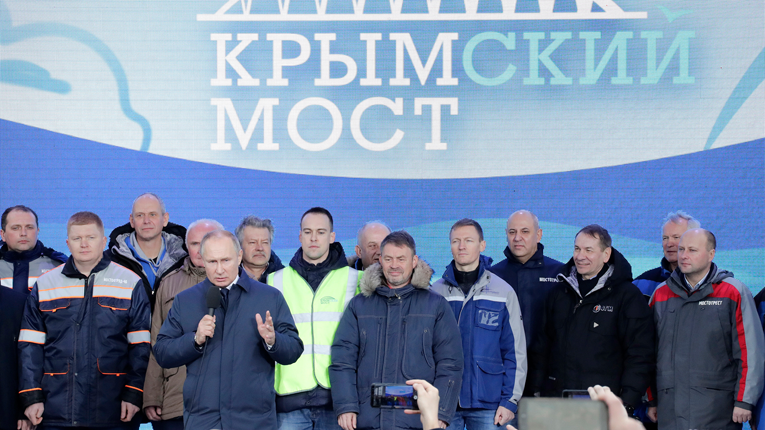 Глава государства поблагодарил всех, кто принимал участие в строительстве моста, отметив, что рабочие со всей России принимали участие в этом проекте.