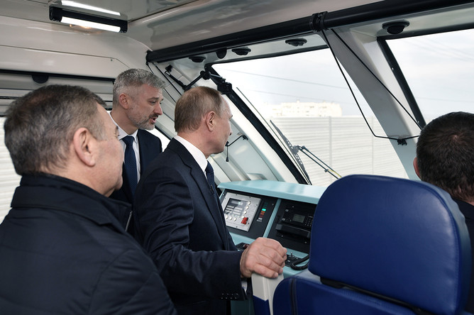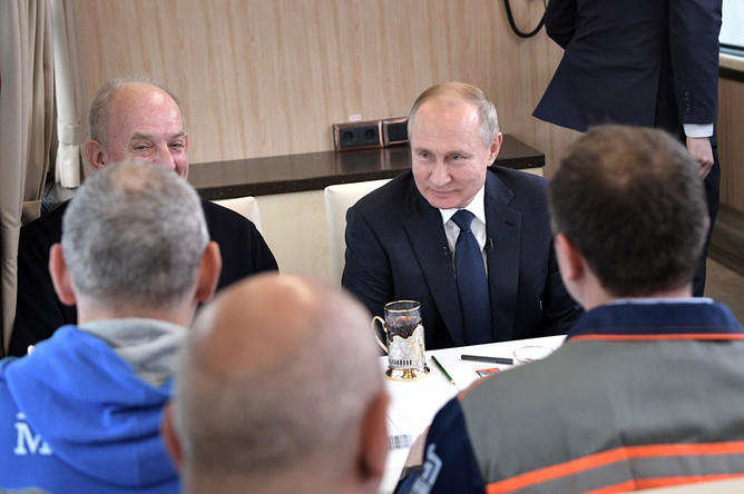 Ранее президент проехал по мосту на рельсовом автобусе из Керчи в Тамань. Президент побывал в кабине машиниста, а после пообщался в вагоне со строителями моста.