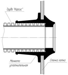 Присоединение шахты к лотковой части производится также через специальную резиновую манжету (рис. 6). Соединение осуществляется с натягом (рис. 7), что обеспечивает герметичность конструкции.