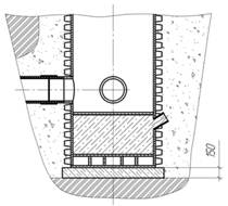 4. При установке колодца в водонасыщенных грунтах для предотвращения его всплытия рекомендуется залить бетонный «якорь», масса которого должна определяться расчётом. При отсутствии расчётных данных бетон следует залить до уровня на 10 см выше верха подключаемых труб. Рекомендуется использовать бетон марки В15. Перед заливкой бетона рекомендуется нанести на поверхность колодца специальную смазку «Polieco» для усиления адгезии полиэтилена к бетону. При установке колодца с пригрузочной камерой следует заполнить её бетоном до верха через специальный приваренный патрубок (рис. 27). Размеры камеры определяются расчётом, представленном в п. 13.2 настоящих технических рекомендаций.