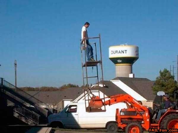 Любой специалист по технике безопасности скажет вам, что все эти скучные, а местами и нелепо выглядящие правила, написаны кровью в самом буквальном смысле этого слова. Ежедневно и до сих пор от несоблюдения этих, в общем-то, нехитрых правил в мире гибнут десятки людей. И также регулярно появляются сообщения о гибели строителей и операторов спецтехники по довольно-таки банальным причинам. Наша сегодняшняя подборка не столь мрачна, поэтому и публикуется в разделе «Курьезы». На момент снятия фотографий ничего не произошло, но легко можно представить себе неблагоприятное развитие этих ситуаций. Просматривая их, невольно задаешься вопросом: «О чем думают эти люди, и думают ли вообще?».