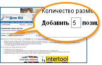 Для добавления нескольких позиций нужно в персональном кабинете компании по ссылке «Прайс-лист» в форме «Добавить 5 позиций в «Строительные объекты и конструкции» изменить число добавляемых позиций, выбрать нужную группу товара и нажать кнопку «Ok».