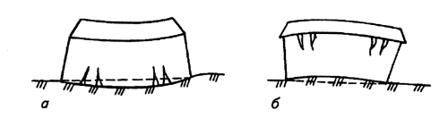 Рис. 2. Оседание грунта неодинаковой несущей способности: