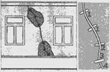 Рис. 5. Образование трещин в стенах из-за воздействия на конструкцию перекрытия повышенных нагрузок. Трещины, расширенные сверху, обычно образуются от оседания фундаментов со стороны трещины, расширенные снизу — от оседания средней части дома.
