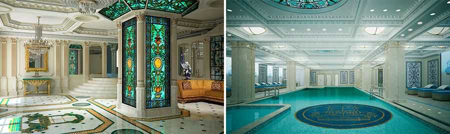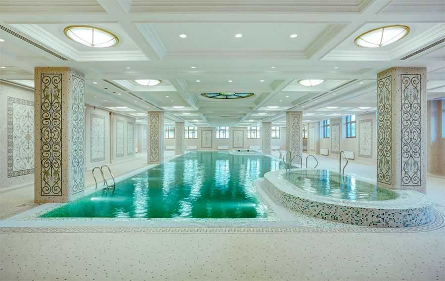 Дом с историческими квартирами и видами на акваторию Невы, расположенный на набережной Кутузова, оснащен не только автомобильными лифтами, но и тренажерным залом, 15-метровым бассейном, зоной SPA, гидромассажной ванной, сауной, хамамом и массажным кабинетом, занимающими этаж площадью 500 кв.м. Изюминка проекта – окна бассейна выходят в Итальянский дворик, что создает иллюзию открытого пространства.